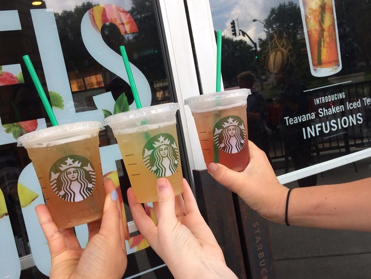Starbucks gave away free iced tea on Friday to introduce three new bold flavors of iced tea. The coffee chain, in partnership with Teavana, is now steeping fruit into delicious Teavana iced teas. Their new Teavana Shaken Iced Tea Infusions come in three flavors: Pineapple Black Tea, Strawberry Green Tea, and Peach Citrus White Tea. Starbucks previously used flavored syrups in their teas, but these drinks are made with fresh fruit and have no artificial flavors or sweeteners. Stop by a Starbucks for a refreshing new summertime drink.