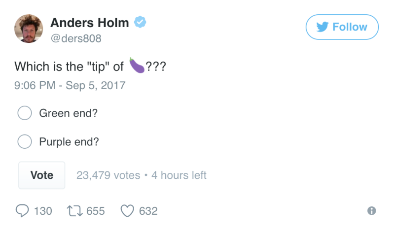 This Twitter user asks a question that many probably never thought about before. His poll about the “tip” of the eggplant is so evenly split and Twitter is going nuts (no pun intended).