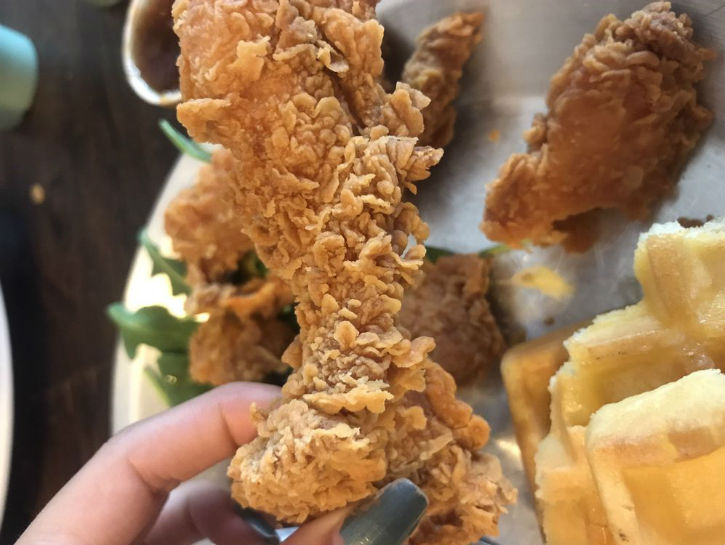 Tyler was curious about whether or not they would actually serve another restaurant’s chicken as their own, so he ordered the chicken and waffles. Once he got his meal, his question was quickly answered. “I thought the chicken tasted suspiciously like Popeyes,” he wrote in his Yelp review, “and was also rather stale. I kindly asked our waiter how they cooked their fried chicken. After checking he admitted that they do in fact use Popeyes.” After speaking with the manager, their group’s entire meal was compensated.