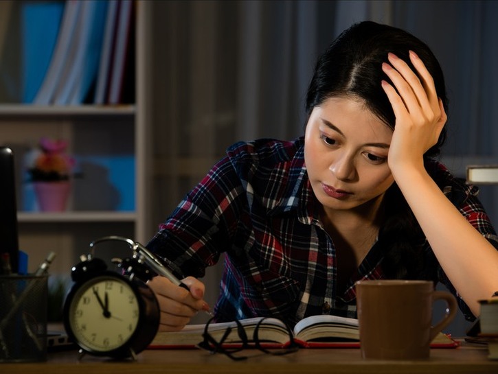 Avoid sitting in cozy chairs or couches; and whatever you do, stay away from your bed! Your body will take your comfortable environment as a signal that it’s time to snooze, and make it all the more difficult to stop yourself from dozing off. Even if you’d normally study on your bed, pick a new place just for that night – preferably one with a hard chair that has a straight backing.