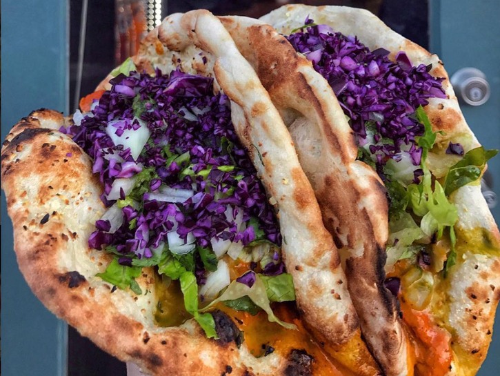 The Indian-inspired tacos from NYC’s Taco Mahal are an incredible combination of cultures and flavors. This chicken tikka masala taco on garlic naan is a creative and game-changing way to eat Indian food. Taco Mahal also offers chicken or lamb curry on a naan taco served up with sides like rice and lentils or chips and chutney. Nama-say thank you to whomever came up with this wonderful creation.