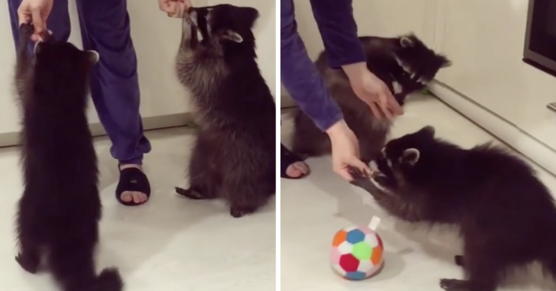 These two raccoons are showing off their tricks to get the best kind of reward – food! You get a tiny glimpse of the third raccoon in this family but he doesn’t seem to want to show off for the camera. Their names are Fury, Funny and Fuji and they have their own Instagram page with over 800 posts.