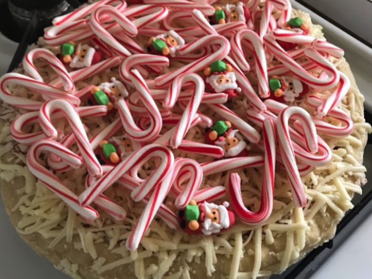 One girl took Christmas cheer a bit too far when she posted a ‘holiday pizza,’ topped with candy canes and little Santa candies.