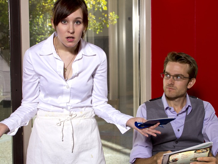 The other waiter finally snaps. She’s too stressed out. She heads to the kitchen ‘to help cook’ and will not return to front of house.