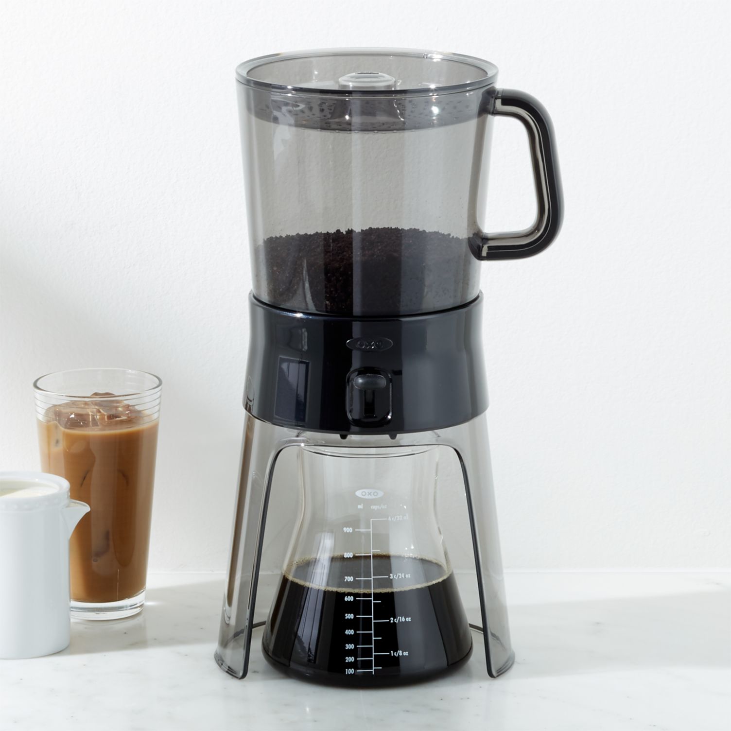 If you want a cold brew coffee maker that gives you plenty of smooth, acid free coffee, then the The OXO Cold Brew Maker is your best bet. You can find this coffee maker at Crate&Barel, along with other coffee makers. The OXO Cold Brew Maker brews up to 4 cups of concentrate, and when you combine it with water, you get 14 cups of cold brew! It’s a pretty easy system to use; fill the brewing container with with coffee grounds, pour water over the grounds, and let them steep. The coffee maker offers a ‘Rainmaker’ feature that evenly distributes water over the grounds to extract more flavor.
