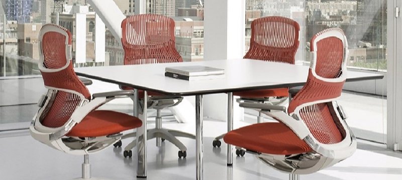 The designers at Knoll created this in response to research on the positions that people tend to sit in during the workday. As such, the chair allows for a wide range of flexible movements and sitting positions. The Frameless Flex Back provides necessary lumbar support for the spine, and the Continuous Lumbar offers support even if you’re positioned sideways in the chair. The seat can also recline in accordance with three separate recliner settings, giving you full control over the tilt of the chair, and the Dynamic Suspension helps to balance your weight as you recline. The adjustable arm height and various wheels for different types of flooring make this chair a strong contender for any type of office environment.