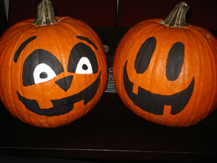 For this option, you don’t even have to paint your pumpkins, but you can if you want to. All you need is some black felt, scissors, a glue gun, and various accessories (like sunglasses and hats), and you can turn your pumpkins into people! This idea from Pretty Providence will give your gourds the personality you didn’t know they had.