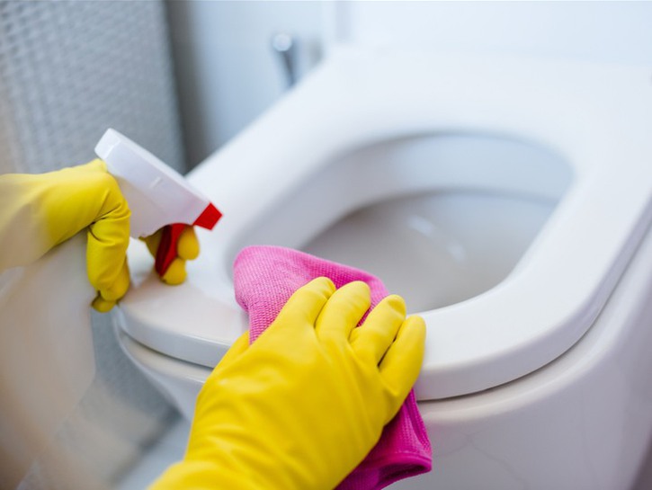 - Spritz the toilet bowl with your cleaner and leave the solution to sit for a 5-10 minutes
