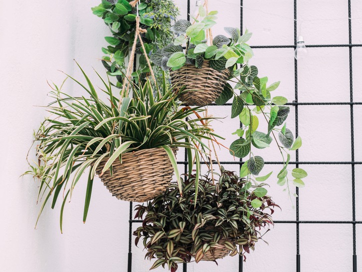 The most traditional method is to hang plants from the ceiling. You’ll need to drill a hole or two in your ceiling to hang the ropes that will hold the planters in place. We recommend finding a way to anchor the planters into the ceiling to avoid them crashing down in the future.