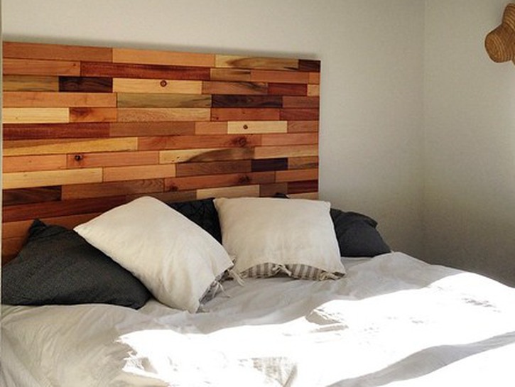 A plain piece of plywood has a peculiar aesthetic, is inexpensive and easy to install. A plywood headboard is also easily customizable. You can add shelves, paint your own design, or cut the plywood into interesting geometric shapes. Really, the opportunities here are endless. We advise smoothing the plywood out before using it as a headboard – no one wants those wood flakes on their pillows!