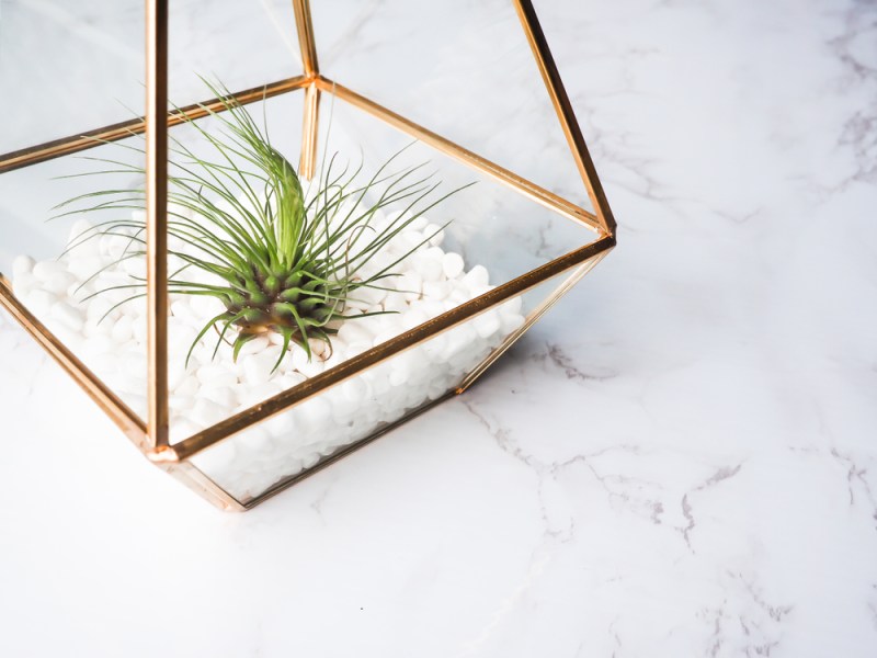 These versatile babies make incredible, living art displays. While a terrarium could suffocate these circulation-loving plants, an aerium glass enclosure allows for some airflow. The decor opportunities are limitless—hang them on the wall in a sconce, macrame, or glass planter. Put them in a tiny holder, like this cute pineapple pot, this mermaid, or these dinos. Heck, you can even wear an air plant as a necklace!
