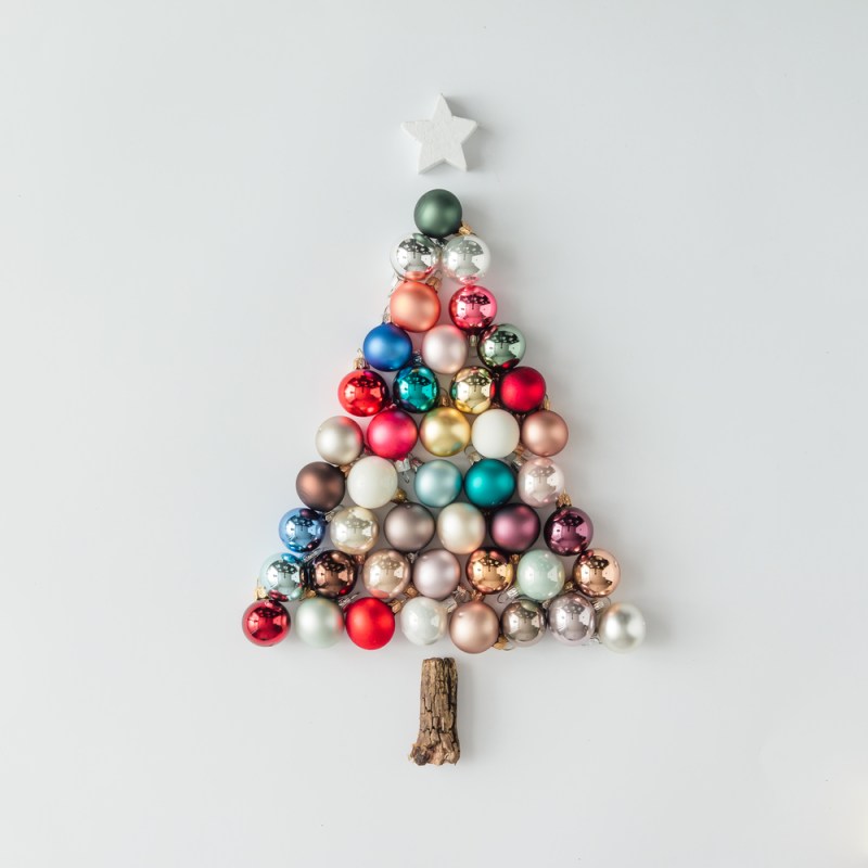 Go gradient with a rainbow Christmas tree! Bring depth and color to your Christmas tree design with complimentary ornament colors in the same family or ROY G. BIV-style. To achieve this look, start with the lightest shade at the top and save the darkest, richest color for the bottom. Incorporate sentimental ornaments, or save them for a smaller tree elsewhere in your home.