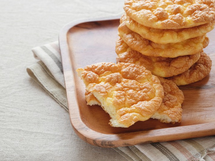 Combine egg yolks, 1/3 of beaten egg whites, 4 tablespoons of melted butter, 1.5 cups of almond flour, 3 teaspoons of baking powder, and just a bit of salt in a food processor. The result should be a lumpy dough. To reduce the potentially eggy taste, add a few drops of liquid sweetener.