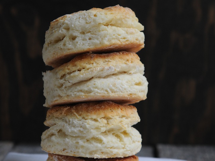It’s tempting to use melted butter, but cold butter is a must when making biscuits. The pieces of butter will melt into the dough while baking and this gives the perfect flaky end result. The butter lets off steam while baking and this creates those pockets that lift the dough and make things flaky.