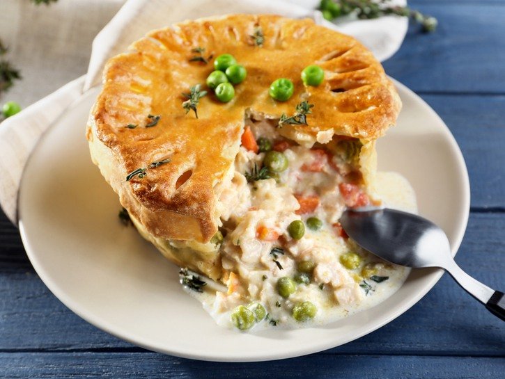 Chicken pot pie is also a good recipe to use any cooked leftover chicken. If you don’t have any stored in the fridge you can easily use some from a store-bought rotisserie chicken.