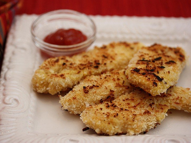 7. If cooking in batches, place the cooked chicken tenders on a plate and cover them with foil to keep them warm while the other chicken tenderloins are cooking.