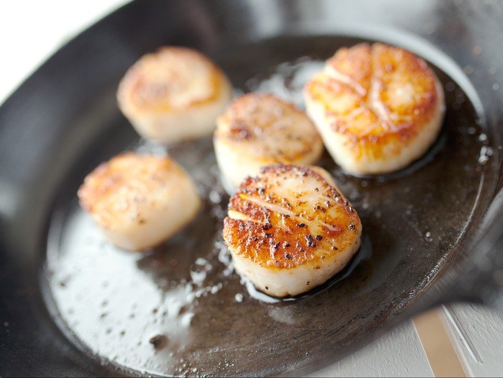 Always ask your local seafood counter if you’re unsure about the type of scallops you’re purchasing. Dry scallops, or natural scallops are best for pan searing. See our article for more information.