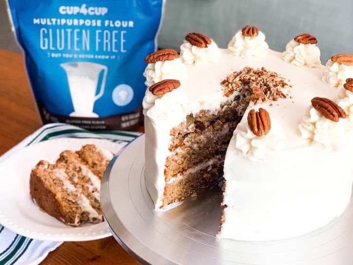 Our take on Art Smith’s sweet showstopper incorporates Cup4Cup Multipurpose Gluten-Free Flour. Bananas, pineapples, and cinnamon sweeten three-tiers of delicious, dense, moist cake. Covered in a decadent cream cheese frosting and crunchy pecans, you would never know it was gluten-free!