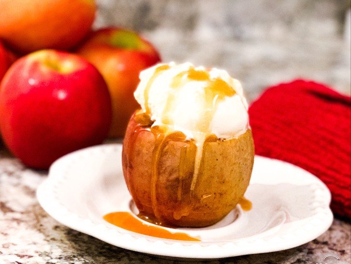 Bake for 45-50 minutes or until apples are fork-tender. Allow the apples to cool for 5-10 minutes before serving. Serve apples with homemade whipped cream or with a scoop of vanilla ice cream drizzled with caramel sauce. Enjoy!