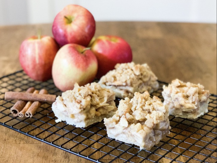 Allow the apple crisp shortbread bars to cool on the counter completely before placing them into the fridge to set for 2 hours or overnight. Once set, cut into 9 bars. If you prefer them warm, be aware that they may be fragile when you cut into them straight out of the oven.