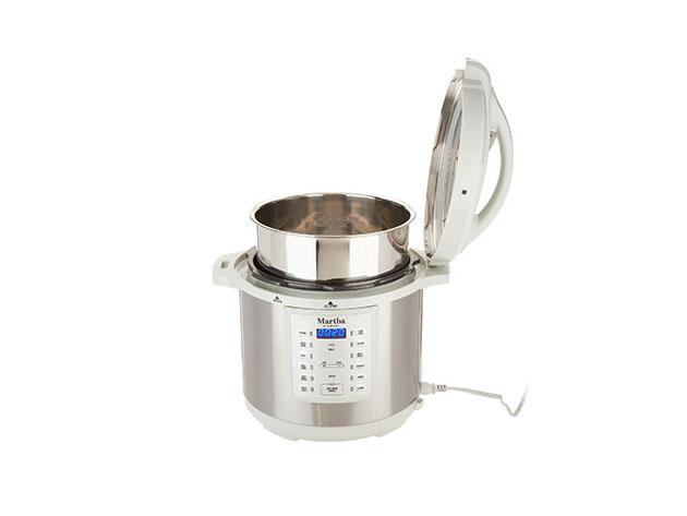 Stress less about meal prep and impressing your mother-in-law during Thanksgiving dinner with one simple kitchen accessory. This Martha Stewart Digital Stainless Steel Pressure Cooker is a multi-function tool that makes cooking nourishing and delicious meals a breeze.