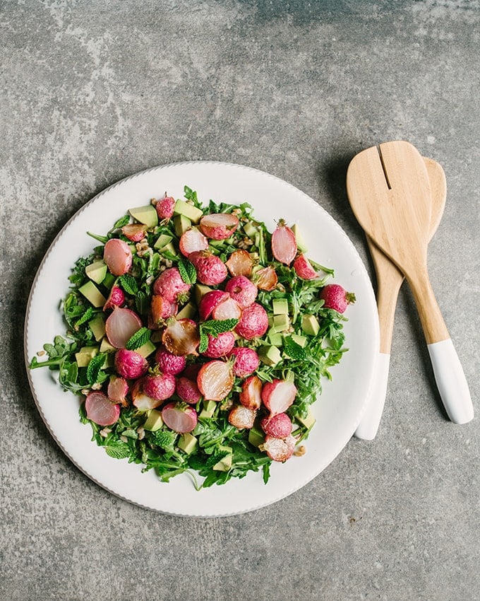 From mild, large heads of butter lettuce to small, peppery arugula leaves, spring and early summer is the best time for leafy greens. It’s pretty much common knowledge now that the darker the green, the healthier it is. Experiment with nutrient-rich lettuces, such as Swiss Chard, collard greens, spinach, and kale. Epicurious describes how to perfectly toss a salad by tearing the lettuce (Little Gem in this case) into bite-size pieces, then washing, air-drying, and wrapping in a dishtowel in the fridge until time to dress and serve. To dress, pour the dressing in the bottom of a large bowl, then add the leaves and toss—using your hands instead of tongs, which can bruise the leaves. Transfer the coated leaves to the salad serving bowls. This way you avoid over-dressing, which leads to a soggy salad.