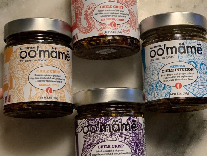 OoMame is a chile crisp. I didn’t really know what that meant until we opened our first jar. Inside is a mix of what looks like little seeds of all shapes and sizes. It’s spicy, but not enough to make my nose sweat (which is my signature too-spicy tell). In reality, it’s chopped up chilis, dried fruits, seeds, oil, and other secret deliciousness. The jar says “1,000 Uses. One spoon.” OoMame comes in four flavors: Mexican, Moroccan, Chinese, and Indian. So far, Mexican is my favorite, but it literally changes after every meal.