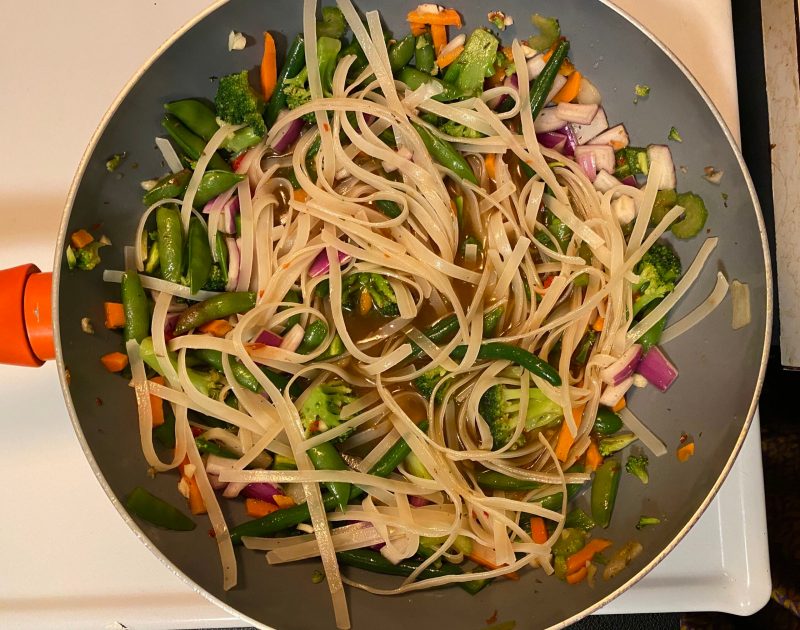 It turns out, it’s way easier than I thought! The ingredients I was convinced I’d only find at a specialty food market – namely the fish sauces and rice noodles – were easy to find, albeit the options were limited to one or two types of each. So, in an effort to save a few pennies, I decided to dive into the world of fish sauces and rice noodles and make a version of my all-time favorite Thai dish from home. The best part? It only takes one saucepan, deep skillet, or wok. Saving money, hardly any dishes, and it’s vegetarian? The win-win-win of it all is almost too much.