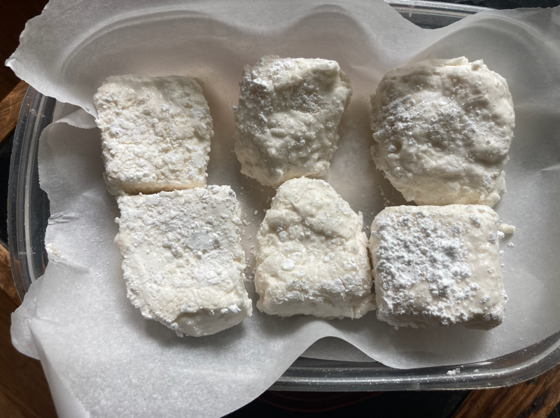 Make sure to let the marshmallows cool before cutting into them— or you may end up with more dense marshmallows.