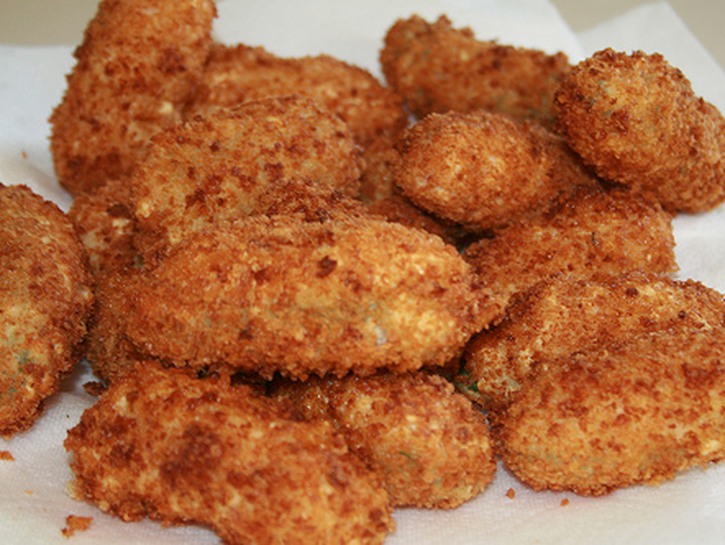 Substitute vegan-friendly cheese from brands such as Kite Hill or Daiya for the regular cheese and VeganEgg for the eggs. Check the label to make sure your breadcrumbs are vegan. Panko is usually vegan, but use discretion.