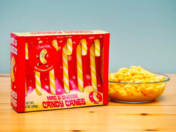 Archie McPhee wants to see us suffer this holiday season with their latest invention. Mac ‘n’ cheese candy canes are available for purchase in their stores, complete with an “instant mac and cheese flavor” and “cheesy flavoring.” There are six to a box and they’re on the larger side so you can really live life to your tastes. They’ll also only set you back $5.95 if you’re interested.