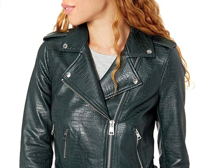 This iconic jacket comes in several colors and textures to fit any fashionista’s taste and preferences. Browse the Amazon page to find the color and texture for you, like faux suede in charcoal, navy, and brown; faux leather in black, charcoal, navy, and plum; as well as faux crocodile leather!