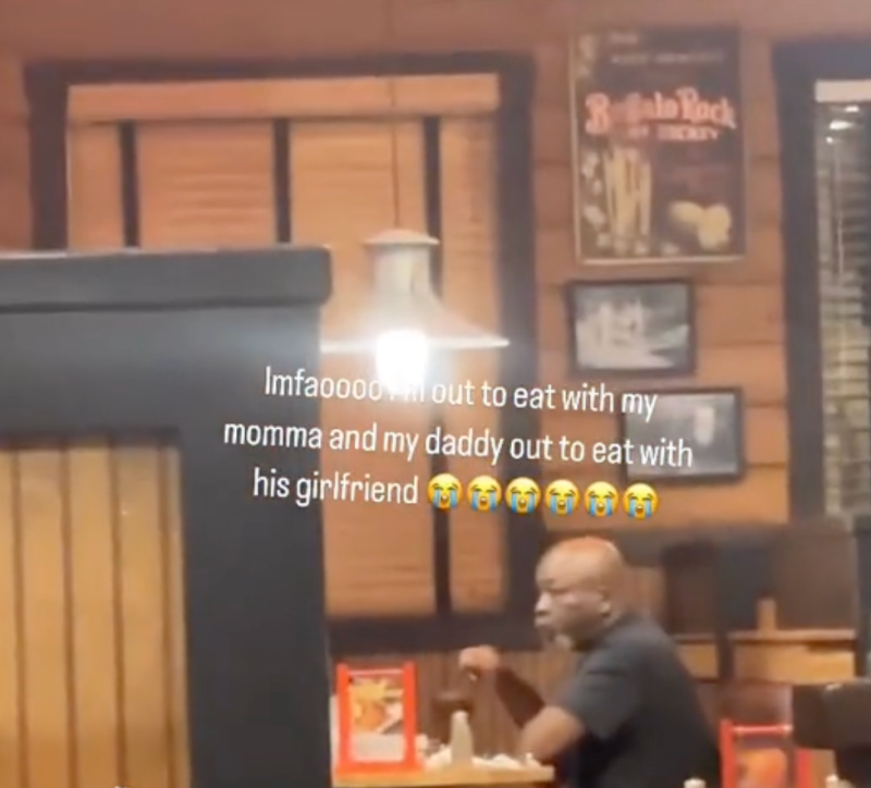 “Me and my momma went out to eat and saw my dad with his side chick.”