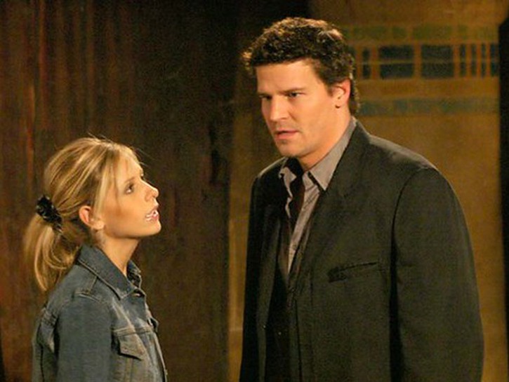 “David Boreanaz was terrible on set. He would pull down his pants between takes to make his fellow actors break character and frequently ad-libbed or changed lines to throw them off. Sarah Michelle Gellar would sometimes fight back. The two would eat tuna fish or pickles before kissing to make the scenes as unsexy as possible. She would even pin or sew her costume together to make it hard for him to unbutton or remove.”