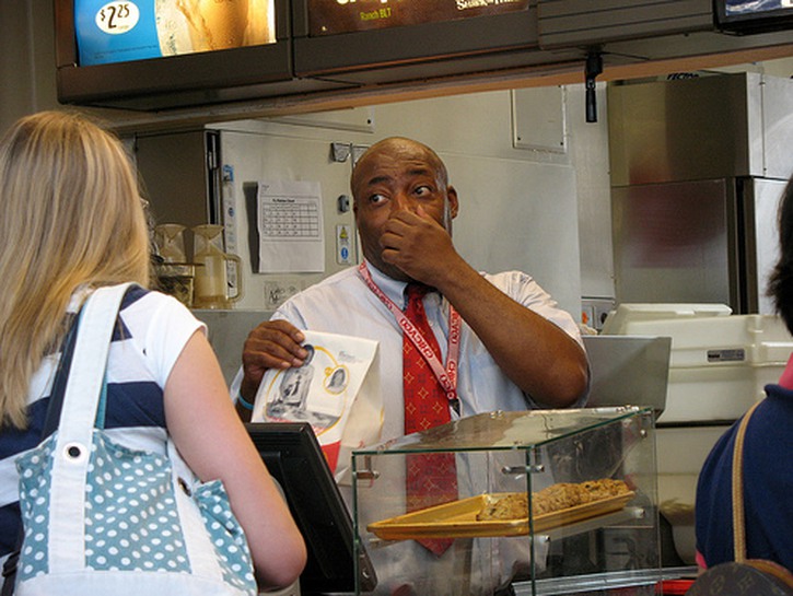 “I was working until close at McDonald’s, and 5 minutes before we were going to close up, a car full of wasted kids comes through the drive-thru. They are being loud and obnoxious and ordered a ton of food that we didn’t have ready, so it took us like 20 minutes past close to make it all. Meanwhile, one of the kids gets out of his car and is leaning in the drive-thru window being a total jerk the whole time, snapping his fingers at us to hurry up. The guy who was going to hand out his food takes the bag, perforates the bottom of it, and hands it out the window while holding the bottom. The kid grabs it forcefully by the top which causes the bottom to drop out and spill his food all over the ground. We slammed the drive-thru window shut and killed the lights.”