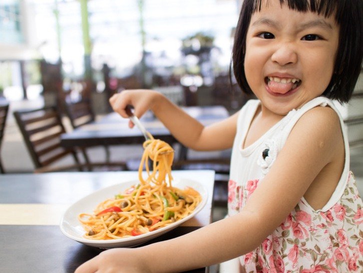So I dropped off the food, and when I came back to check on them, it was complete chaos. One kid was licking ketchup off of a plate, the other was under the table slinging noodles everywhere, and the parents were happily eating away without a care in the world.